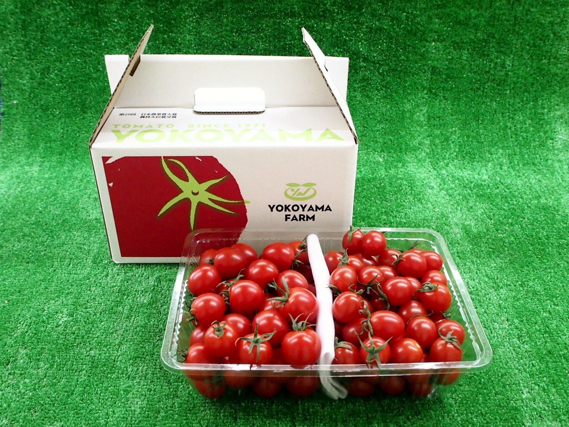 ミニトマトの「あかり」と「こはる」が750gずつ入った、ミックス入りです。